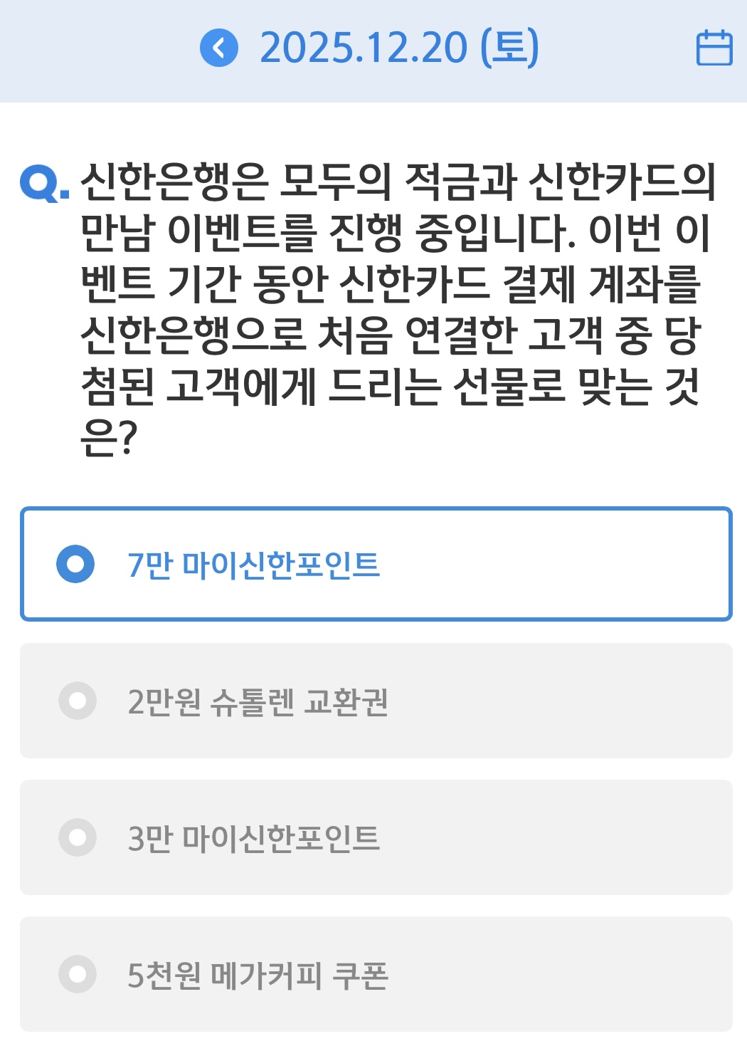 | (신한 쏠퀴즈) 12월 21일 정답 (0) | 2025.12.21 |
